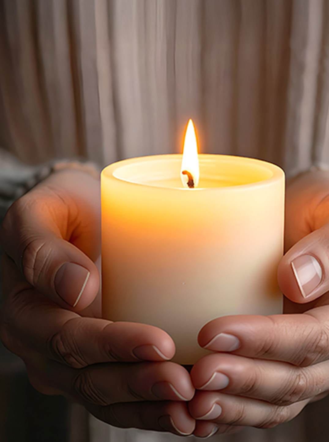 Sanftes Flammenspiel, liebevoll gestaltete Motive und spirituelle Duftkompositionen – unsere Kerzen schaffen sofort eine warme, heitere Atmosphäre und laden dich ein, den Moment bewusst zu genießen.