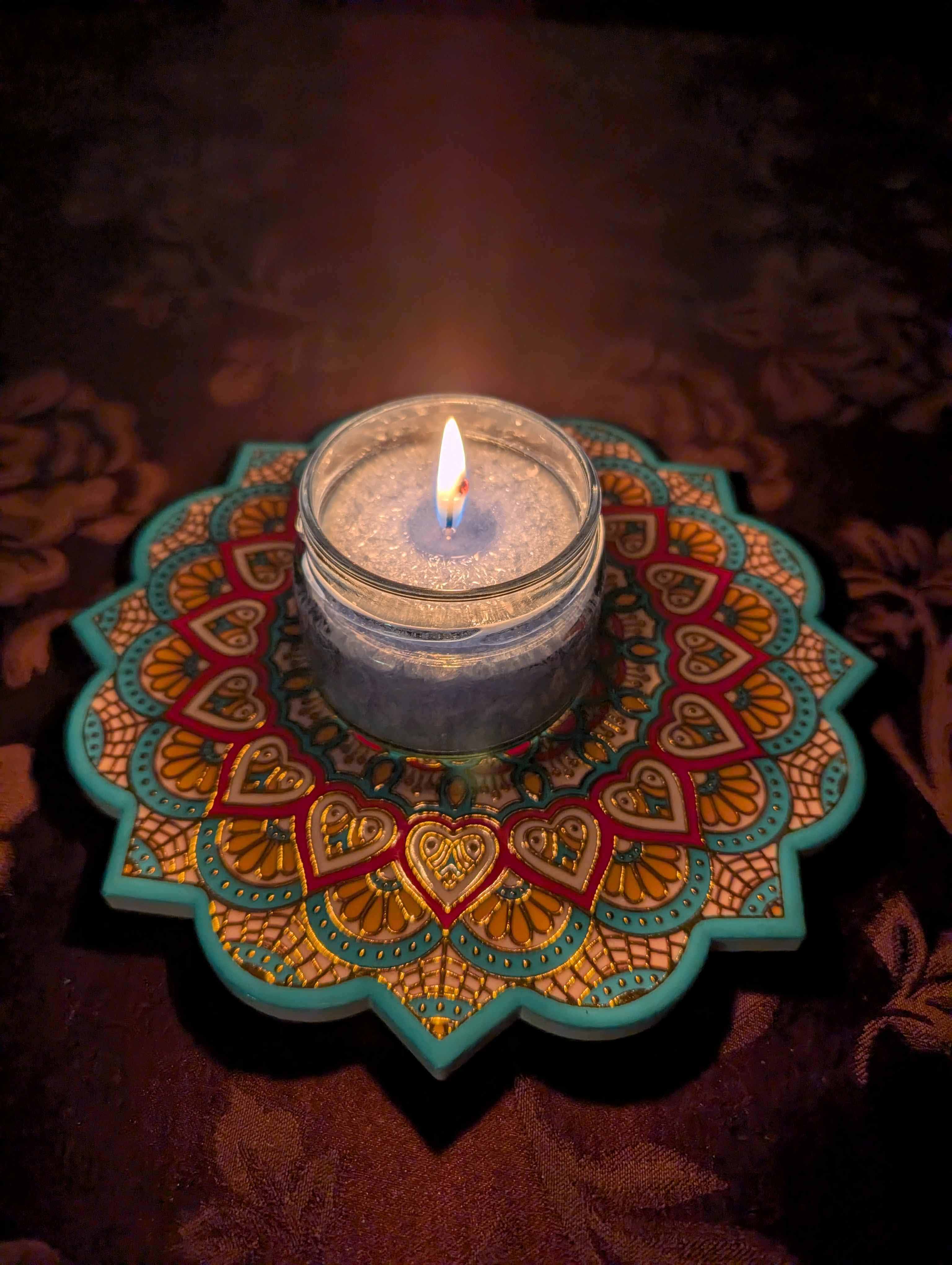 4. Die Flamme betrachten. Stell dir vor, dass ihr Licht nun Frieden in die Welt trägt.