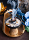 Dieser Kelch vereint Funktionalität mit einem Hauch natürlicher Wärme. Perfekt für Räucherrituale oder als stilvolle Dekoration in jedem Raum. Räucherkelch in schlichter Eleganz. Pulverbeschichtetes Eisen mit einem Mangoholzfuß, ca. H. 9,5 x Ø 11,5 cm.